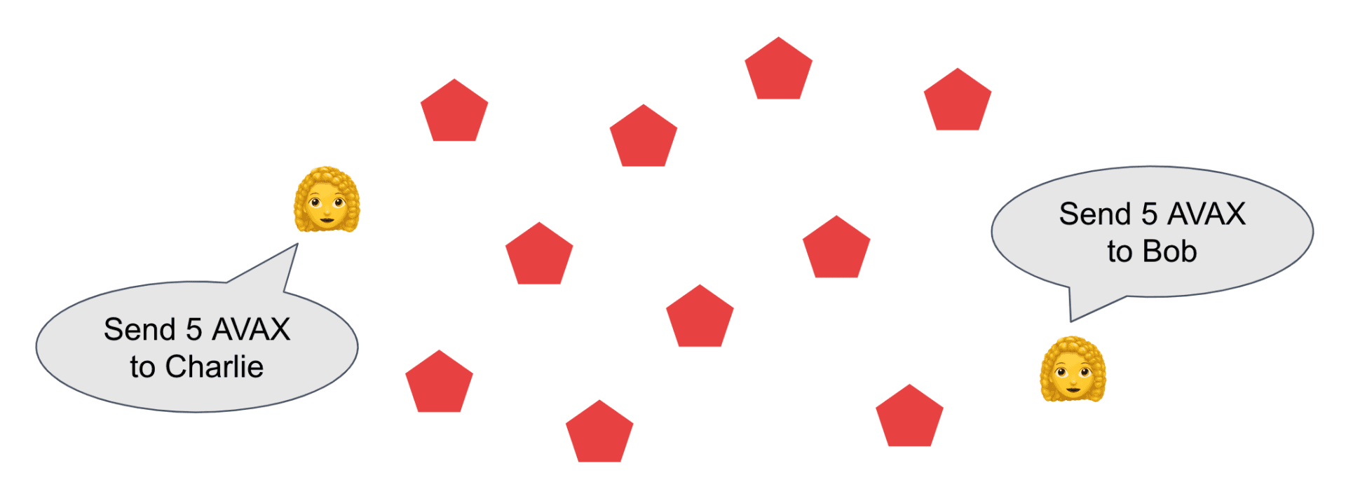Each of the transaction in itself is valid. Alice owns 5 AVAX and should be able to send them to whomever she wants. However, she should only be able to send the amount she actually owns.